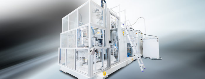 Die auf die Massenfertigung ausgelegten Maschinen arbeiten im bewährten Wechseltakt-Prinzip mit Be-/Entladen und Schweißen, so dass kürzeste Nebenzeiten erreicht werden können. An der runden Vakuum-Arbeitskammer ist unten ein Ring mit einem Konus für die Aufnahme der Kammerböden fest gelagert, der von einem Servomotor angetrieben wird. Bei jedem Arbeitszyklus wird durch eine Hubvorrichtung ein Kammerboden exakt in diesen Konus eingeführt und danach wieder in die Einlegeposition abgesenkt.